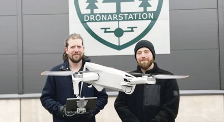 Išaiškinant miške audrų suniokotus ir vabalo žievėgraužio apniktus medžius Švedijoje gelbsti brolių Oloffsonų įmonėje Drönarstation AB sukurtas dronas. Jam valdyti nereikia specialių žinių, aparato technologijoje integruota vaizdų analizė. Po skraidymo dronas pateikia žemėlapį, kur sužymėtos pažeistų medžių GPS koordinatės. Dronas per sekundę apžiūri iki 200 medžių, per minutę kartografuoja iki 50 ha miško. Nuotraukoje – broliai Joelis ir Jimas Oloffsonai |